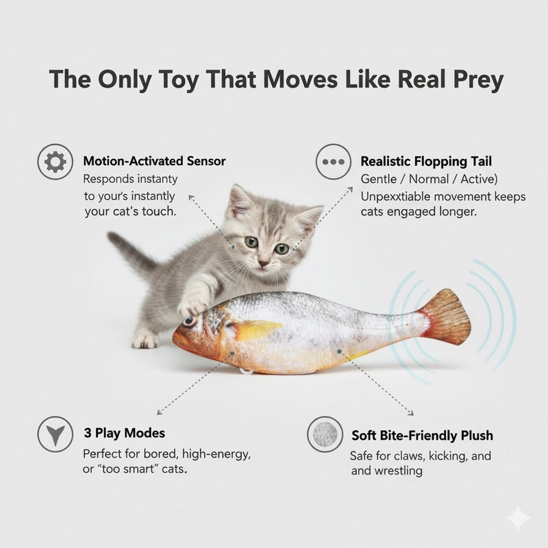 Flopping like real fish, it instantly sparks your cat's natural hunting instincts for endless fun.