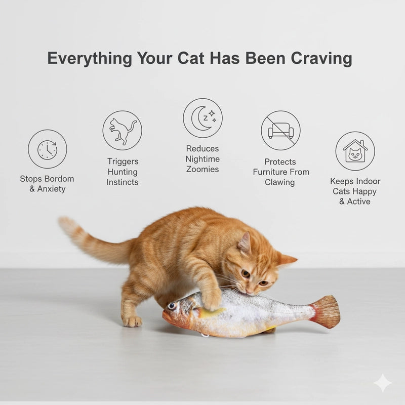 Absolutely! These flopping fish mimic real prey, activating your cat's natural hunting instincts. Get ready for pounces, purrs, and endless entertainment as they chase, bat, and cuddle their new favorite toy. It's designed to bring out their playful side like never before!
