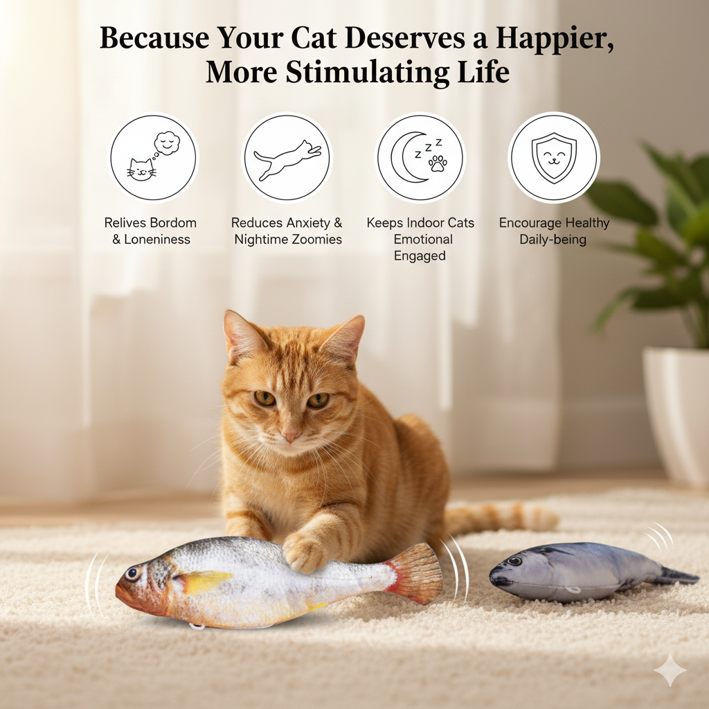 Designed to mimic real prey, these fish trigger their natural hunting drive, making playtime irresistible.